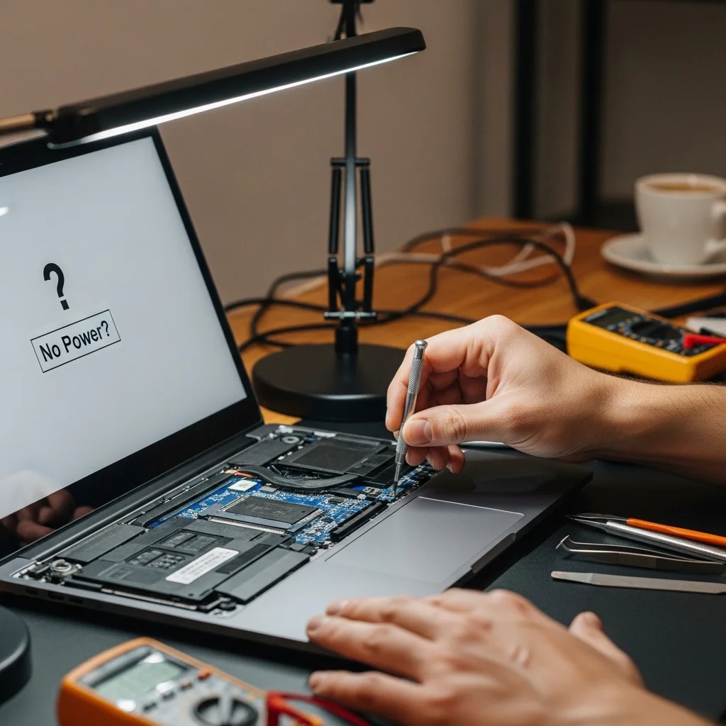Your laptop shows no signs of life – no power, no lights, no fan, no beep. This usually happens due to a failed power IC, a blown capacitor, a dead MOSFET, or a short circuit on the motherboard. So, we offer "laptop won't turn on fixes" in Las Vegas by diagnosing the power rail and replacing failed components.