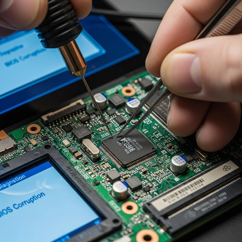 Your computer boots to a black screen, gets stuck on the logo, or shows "BIOS corruption" error messages. We reprogram or replace the BIOS chip using specialized tools. Plus, “same day motherboard repair near me” service is available for most models.